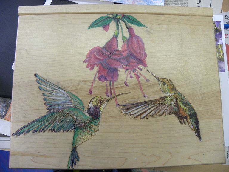 Personalizing cherished memories, is possible with customized artwork. In this case, hummingbirds were the selected choice.