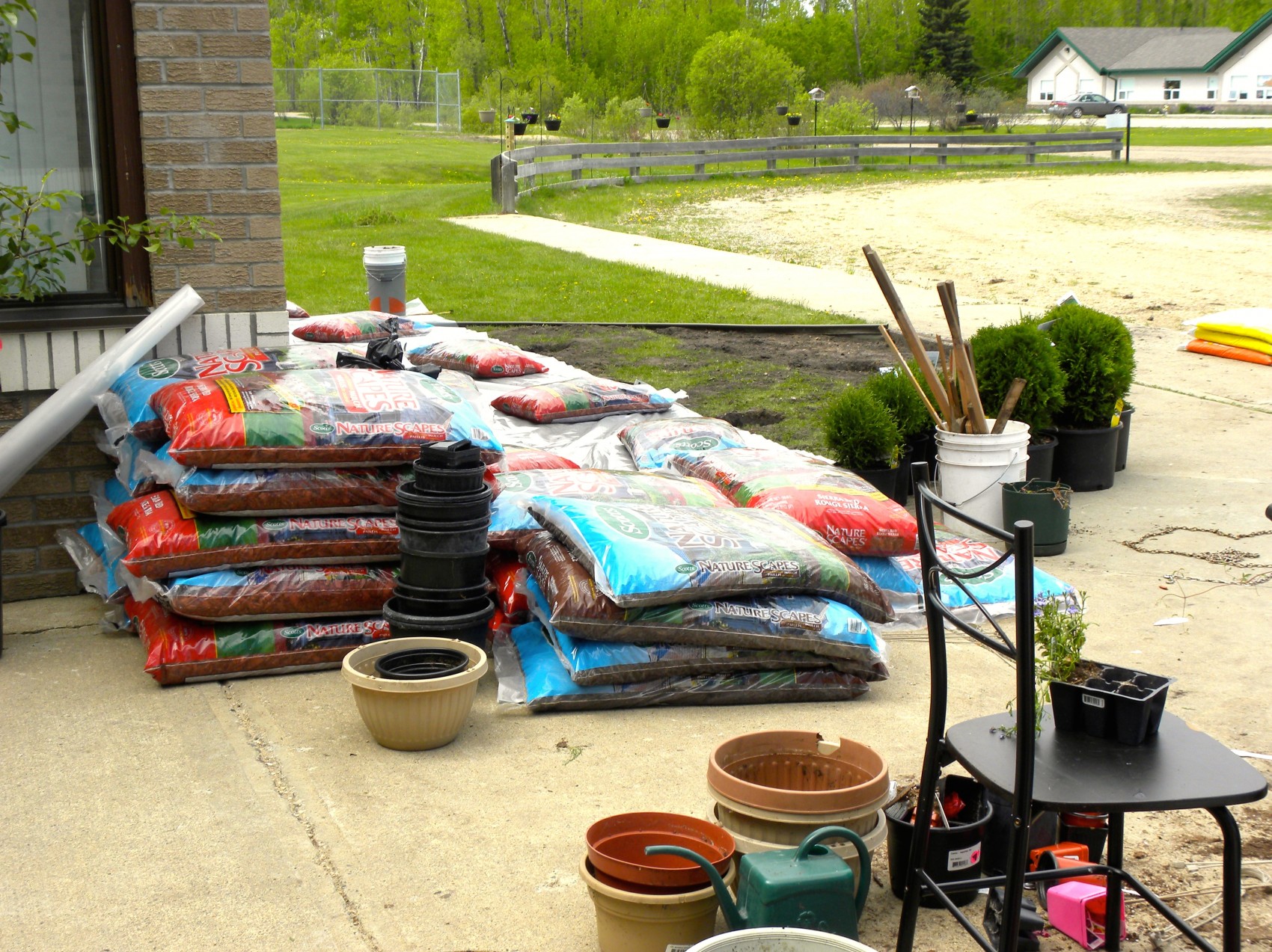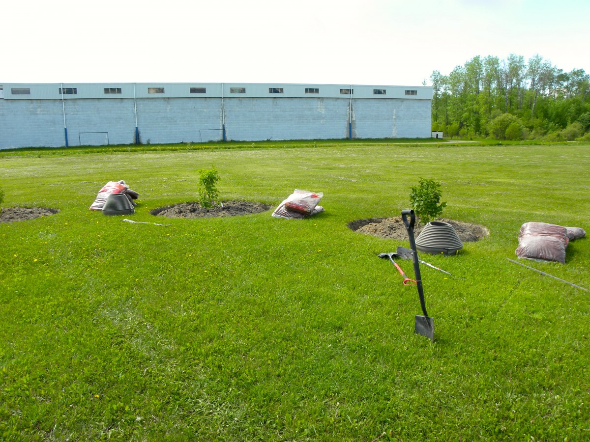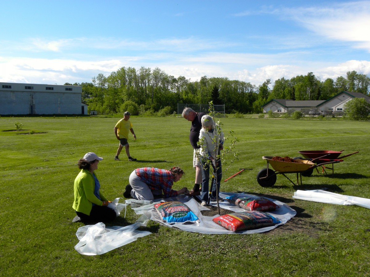 Over the past few weeks artisans laboured to change the surroundings of the building (H.U.B.) that houses the Four Door Arts Forum. They planted a vegetable garden, fruit trees, lilac bushes, cedars, various plants and flowers on the 3.3 acre grounds.